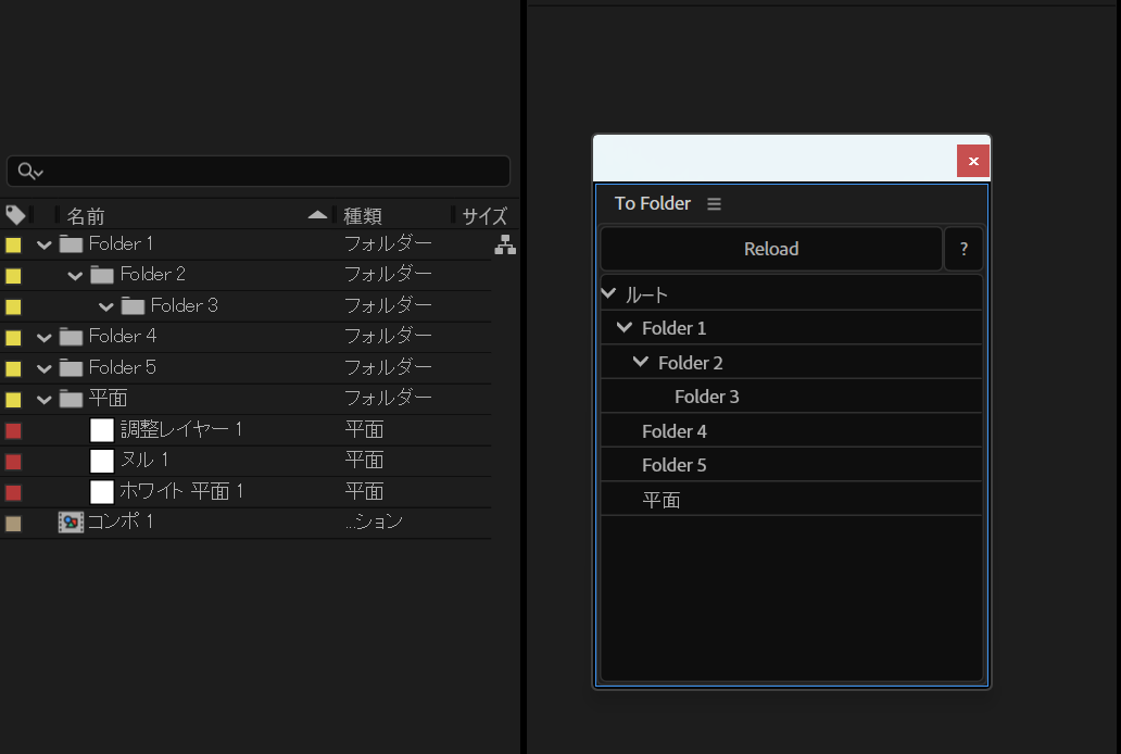 フォルダーを一覧で表示し,選択したアイテム・レイヤーソースをリストでクリックしたフォルダーに格納するスクリプト.